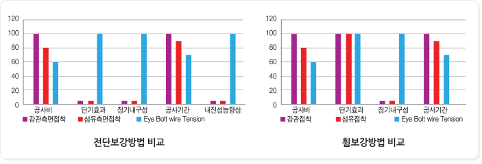 ºÎÀç´ÜºÎ¿¡ Á¤Âø ÀåÄ¡¸¦ ¼³Ä¡Çϰí ÀÎÀåÀç¿¡ Post TensionÀ» °¡ÇÏ¿© º¸°ÇÑ´Ù. º¸°À¸·Î ÀÎÇÑ ºÎ ¸ð¸àÆ®¿¡ ÀÇÇÑ »óÇâ·ÂÀ¸·Î ³»·Âº¸° ¹× óÁüº¹¿ø±îÁö °¡´ÉÇÑ °ø¹ýÀÌ´Ù.