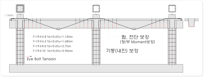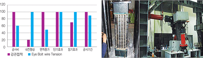 T-plate, Wire rope, Eye Bolt Prestressing¿¡ ÀÇÇÑ °·ÂÇÑ ÈÚ ±¸¼ÓÀ¸·Î ±âµÕ ¼öÁ÷ö±ÙÀÇ Á±¼ÀÌ ¹æÁöµÇ°í, ³»Áø¼º´ÉÀÌ Å¹¿ùÇÏ°Ô Áõ°¡µÇ¸ç, À广Çü±âµÕÀÌ ¿øÇü±âµÕÀ¸·Î º¯È¯µÇ´Â È¿°ú°¡ ¹ßÈֵȴÙ. T-plateÀÇ Á¤Âø°ú ¸ôÅ»ÇǺ¹¿¡ ÀÇÇÏ¿© ³»·ÂÁõ°¡ È¿°úµµ Ź¿ùÇÏ´Ù. ½ÅÃà°Ç¹°¿¡ Àû¿ëÇØµµ ³»Áø¼º´É Å©°Ô Çâ»óµÈ´Ù.